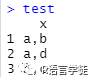 test_separate 是一个新的数据框,由原来的 test 数据框使用 separate() 函数操作生成的。separate() 函数将原数据框中的 x 列按照逗号 , 进行拆分,生成了两列新的数据。所得结果如下: