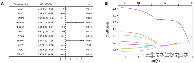 2. IPF自噬相关基因预后风险模型的建立与验证