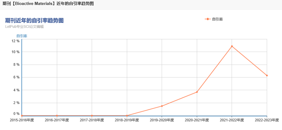 我们可以看到此杂志从创刊以来前几年自引率一直增长,最高为2021-2022年度的10.9%,接着2022-2023年度最新的自引率为6.3%,是比较安全的区间,可以放心投稿。