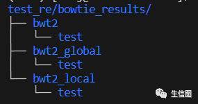 参数-f指定参考基因组,后面是索引文件的前缀,最后会生成6个bt2文件