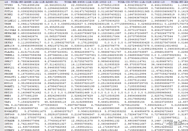代码中对示例基因的CXCR4的表达量进行免疫相关分析。下面是下载整理的样本表达量信息和样本免疫细胞信息。
